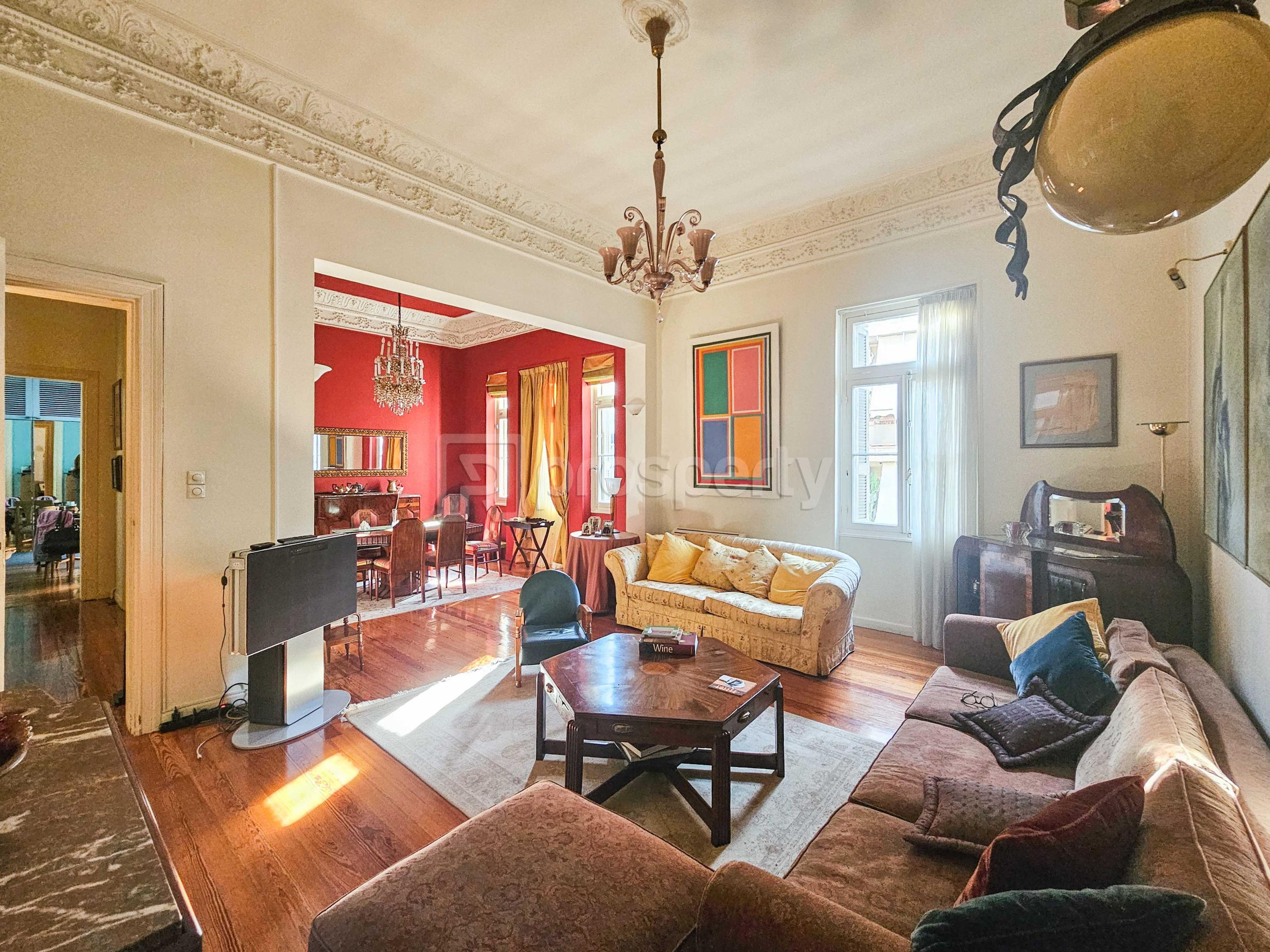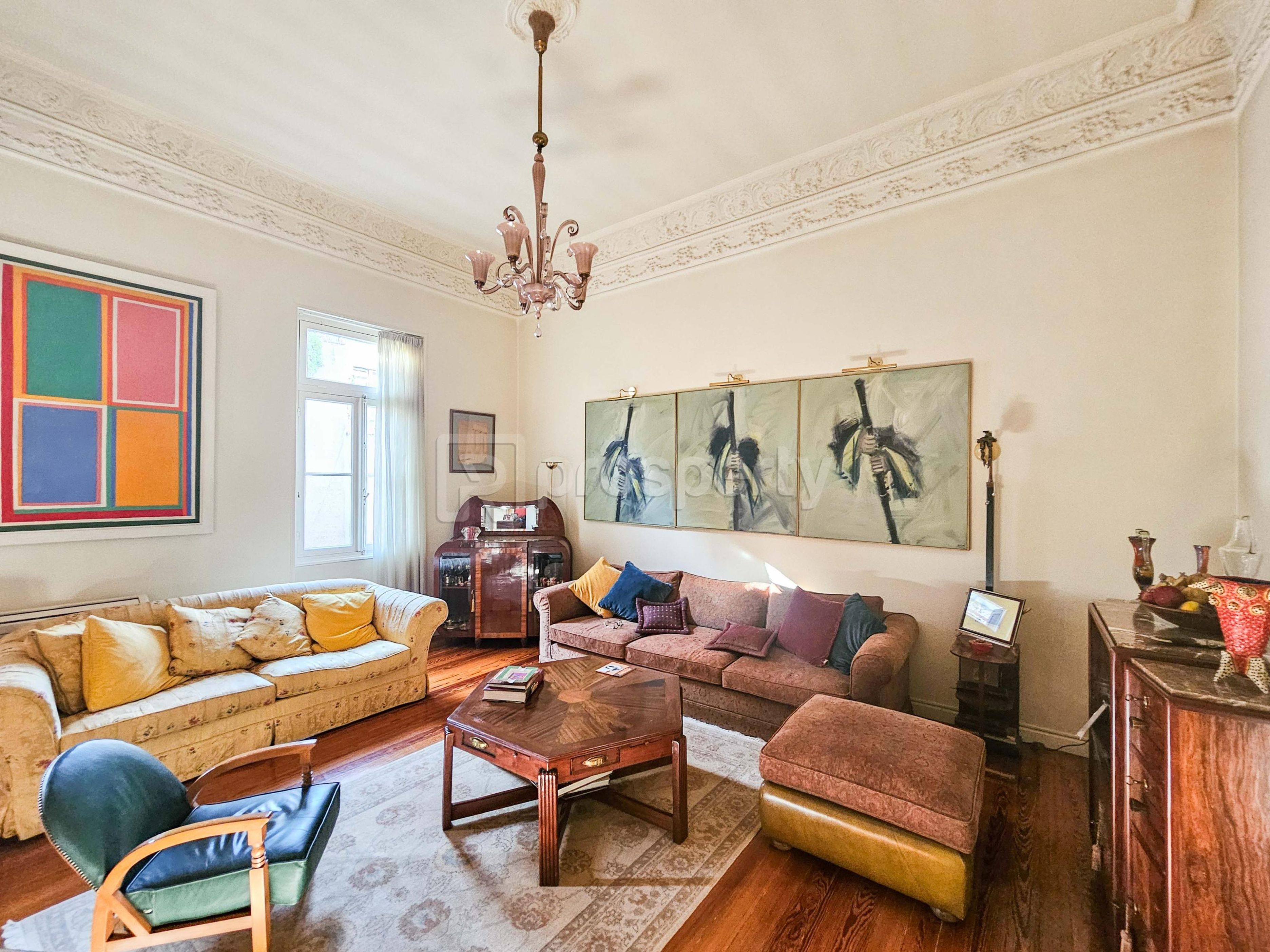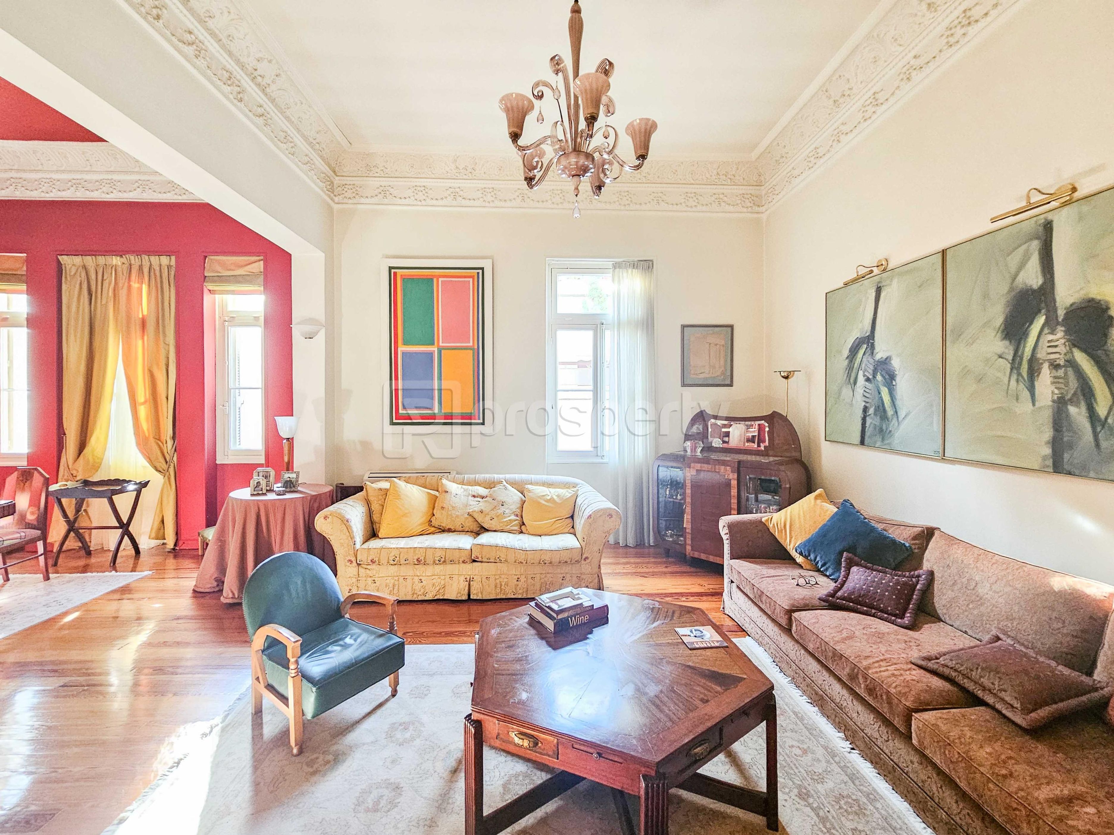 Το εσωτερικό του συνδυάζει την αρχοντιά ενός παλαιότερου ακινήτου με τις παρεμβάσεις μιας πρόσφατης πλήρους ανακαίνισης. Ψηλοτάβανοι χώροι, ξύλινα δάπεδα και προσεγμένες λεπτομέρειες συνθέτουν ένα περιβάλλον με έντονη ταυτότητα και διαχρονικό χαρακτήρα, που παραμένει απολύτως λειτουργικό για τη σύγχρονη καθημερινότητα.