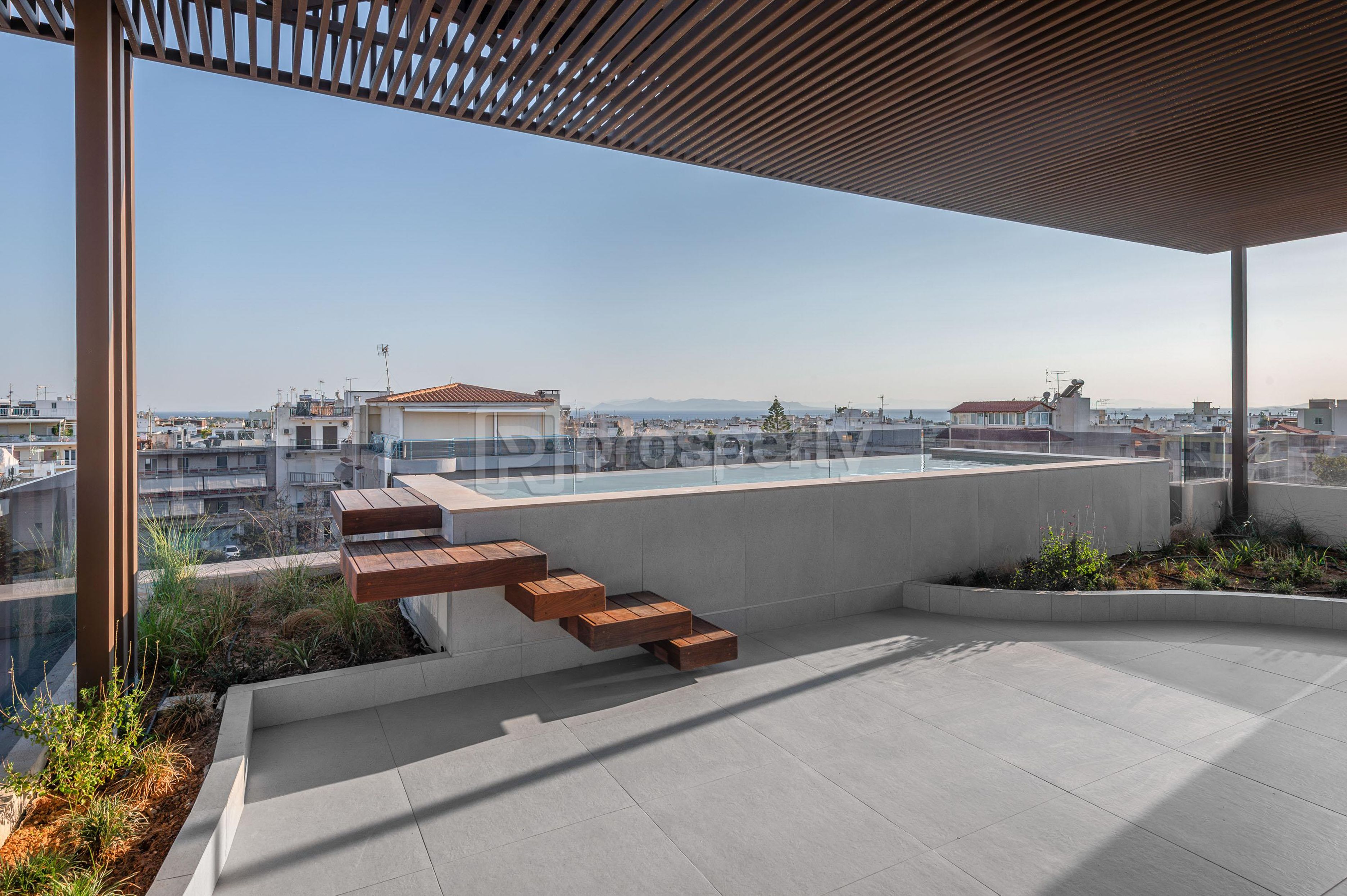 Η κατασκευή της ολοκληρώθηκε το 2023 και το ακίνητο είναι έτοιμο προς παράδοση. Στον εξωτερικό χώρο ξεχωρίζει η ιδιωτική ταράτσα με roof garden, υπαίθριο καθιστικό και ιδιωτική πισίνα, η οποία προσφέρει μοναδικές στιγμές χαλάρωσης με θέα την πόλη και τη θάλασσα.